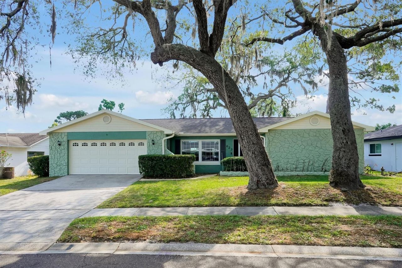 Experience classic Florida tranquility in this beautifully renovated 4-bedroom, 2-bathroom home. Tucked away under a canopy of majestic, moss-draped oaks, this residence offers a versatile floor plan and an expansive backyard designed for both relaxation and entertainment.Step inside to find a seamless open-concept layout featuring durable wood-look laminate flooring and a fresh, neutral palette. The Kitchen is fully modernized with rich espresso cabinetry, striking granite countertops, and premium stainless steel appliances. The custom mosaic tile backsplash and central island with breakfast bar seating create a functional and stylish hub for the home.With four true bedrooms, this home offers incredible flexibility. Whether you need a flex space, a guest suite, or a high-end home office, there is a dedicated space for every need. The primary suite standouts a dedicated dressing area and an ensuite bath featuring elegant stone-topped vanities. The guest bedrooms are spacious and bright, with one offering direct sliding door access to the sunroom-perfect for a private guest entrance or a morning exercise space.The living space extends outdoors through a nicely sized screened patio. Perfect for a bug-free evening lounge. Step out further to the fully fenced backyard, where you'll find an expansive green lawn anchored by an open-air stone patio ideal for summer BBQs and outdoor dining.Additional highlights include a secure perimeter for pets and play, plus a large shed for additional storage and a 2-car garage with a dedicated laundry zone.